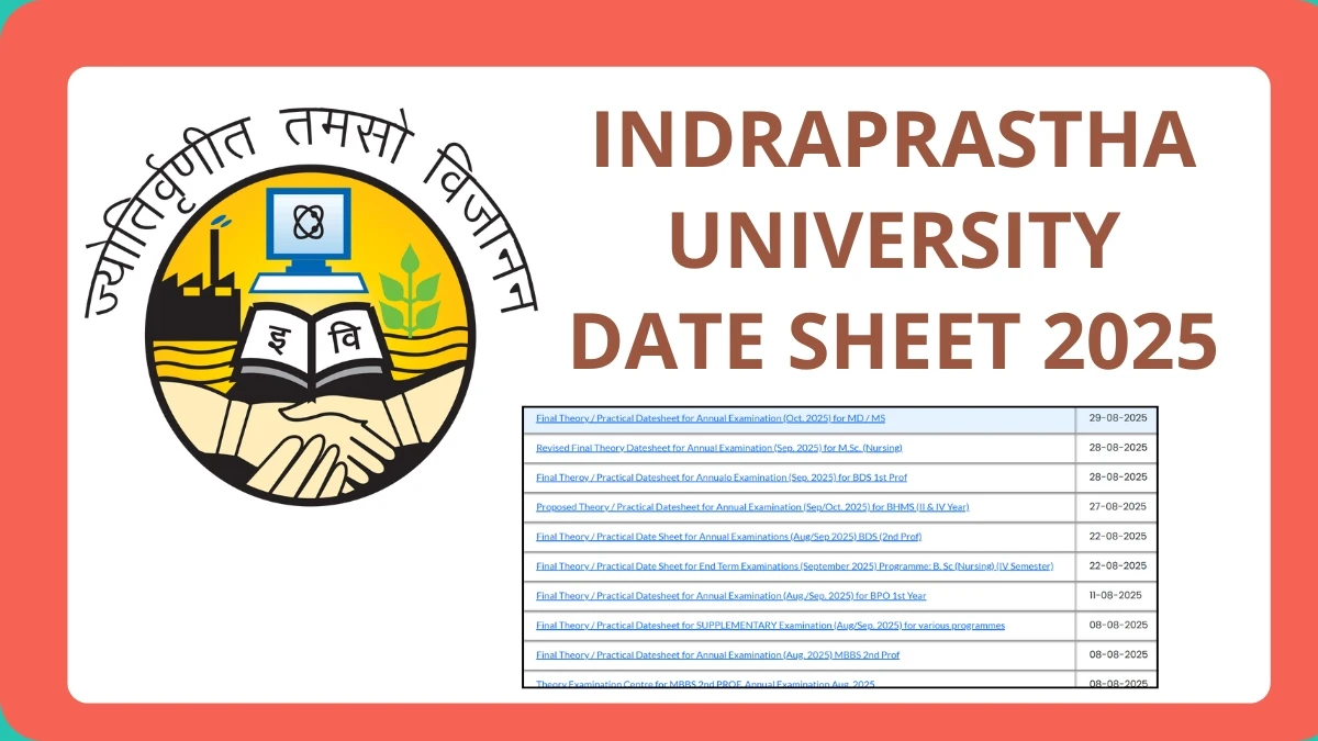 Read MoreUpdated August 30, 2025 10:38 AM30 August 2025 10:38 AM Indraprastha University Date Sheet 2025 @ ipu.ac.in Indraprastha University Date Sheet 2025 is Out! The Indraprastha University has released the MD, MS. Students can access their Indraprastha University Result 2025 using their registration number through the direct link here. For further updates on Indraprastha…