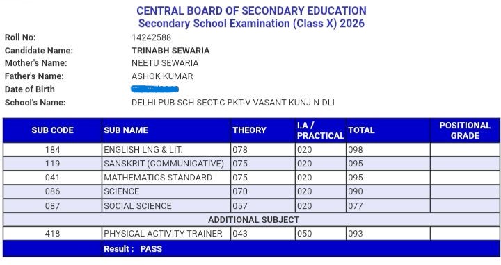 10th result cbse delhi motion